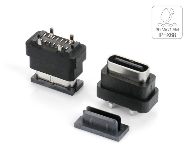 TYPE-C 16母座防水IPX8 沉板 0.8/1.2/1.6 两脚SMT L=7.6 全塑