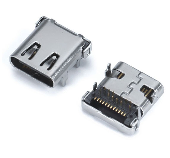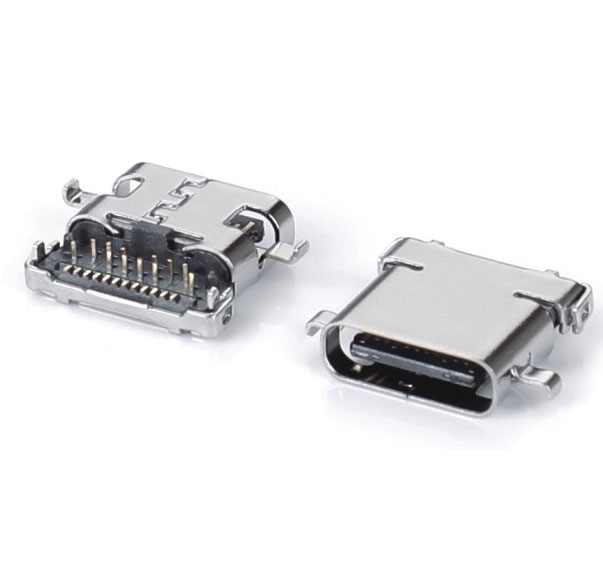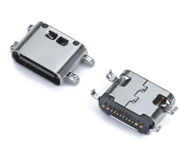 USB TYPE-CF 16P 双压片 卧贴SMT 外壳四脚插板 L=7.35