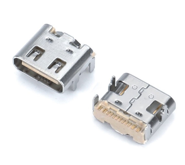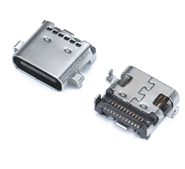 USB TYPE-CF 24P 卧贴SMT(双排)外壳四脚插板L=7.90
