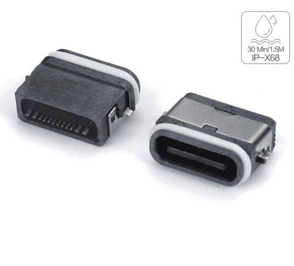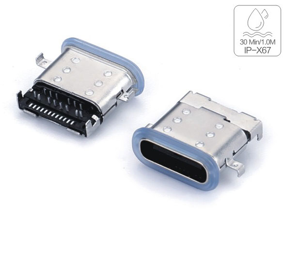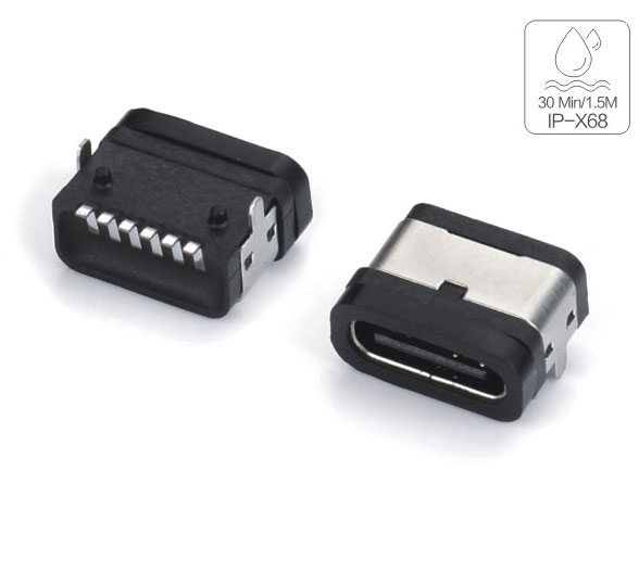 TYPE-C 6P板上防水母座 L7.5外壳两脚插板端子SMT IPX8